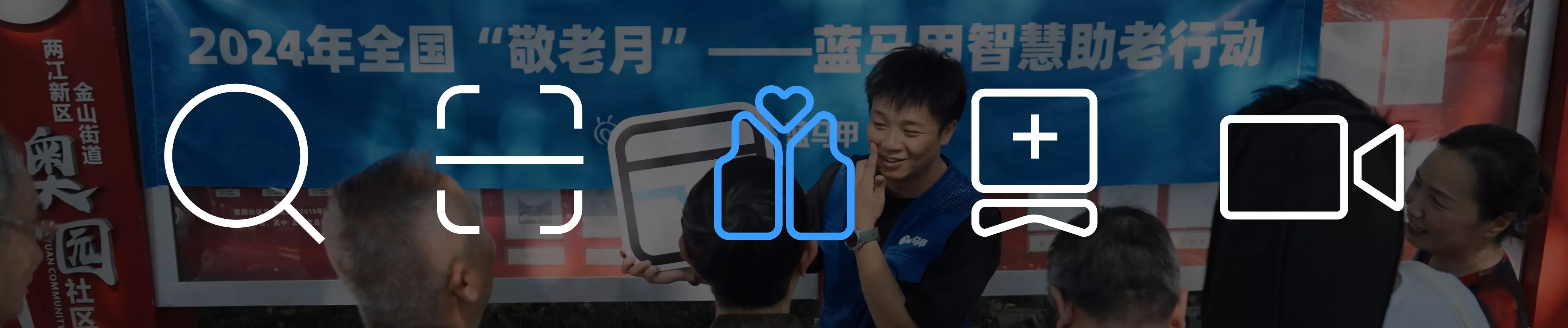 于是,我们以「符号」为总概念,从圈圈、横线、十字、壹、方框这些日常符号作为切入,展现银发族在蓝马甲的帮助下,逐步融入数字世界的生活场景。同时为确保公益项目的真实性,我们从现实中取材,故事本身就能让大家意识到,数智助老并非遥不可及的难题,而是每个人都能参与的温馨行动。